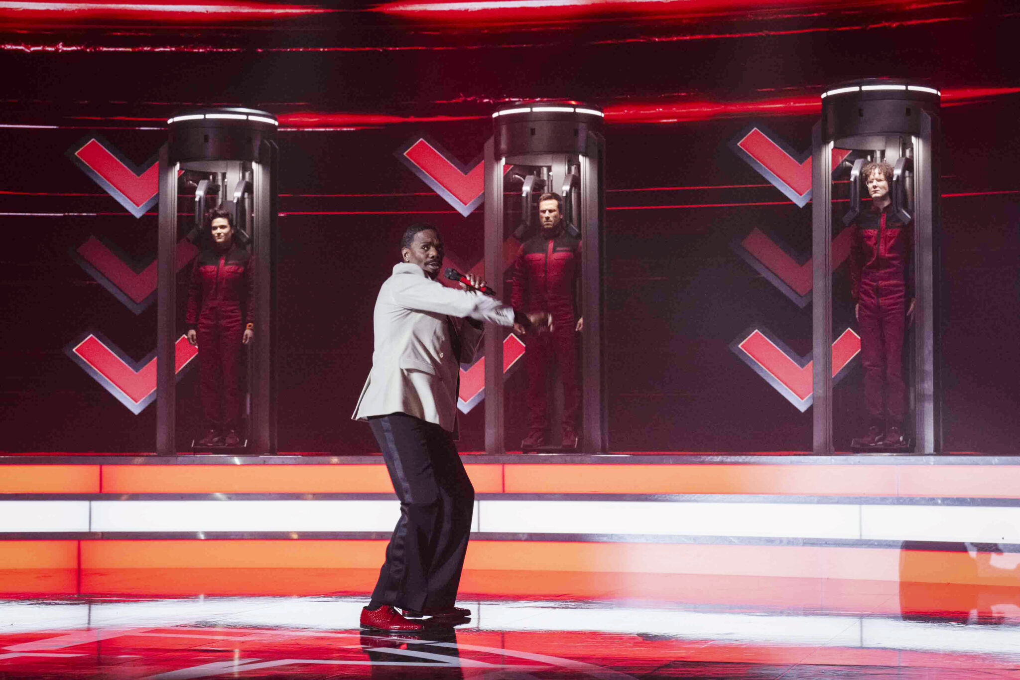 権力者が用意した国家的な枠組みと物語のなか、暴力は公然と容認され、放置され、人々の熱狂と悪意のもとで膨れ上がっていく――。「テレビ」というメディアが時代錯誤に見えるほど現代的な設定ゆえ、ライトはあえて時代や媒体の設定を曖昧に見せている。