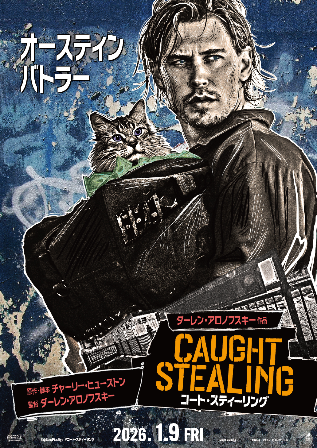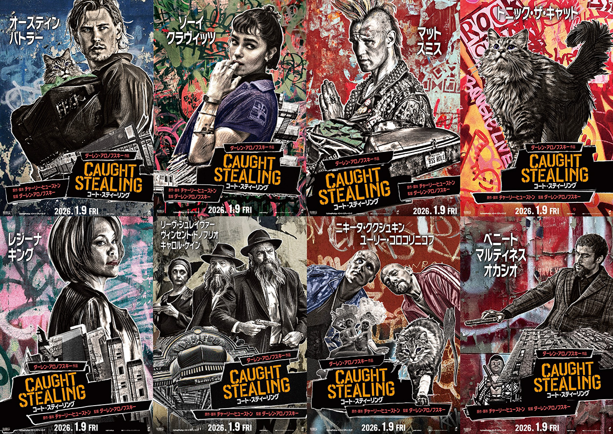 アカデミー賞常連の鬼才・ダーレン・アロノフスキー監督が、ハリウッドの若手スター オースティン・バトラーを主演に迎えた映画、『コート・スティーリング』。舞台となる90年代ニューヨークを象徴するかのような、グラフィティ風のキャラクターポスターが公開された。