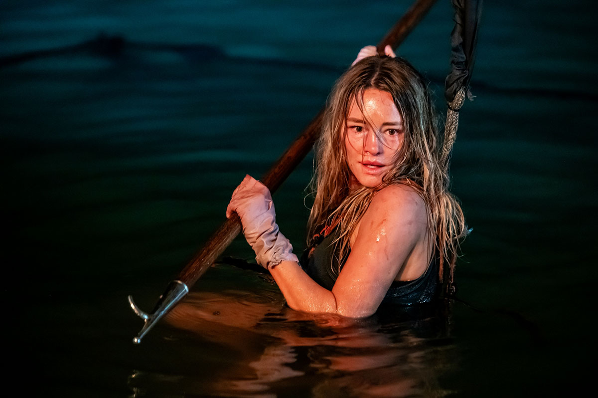 またサメに取り憑かれた狂気の船長・タッカーを演じるのは、オーストラリア・シドニー出身のジェイ・コートニー。トム・クルーズ主演の『アウトロー』で悪役を演じ注目を集めると、『ダイ・ハード/ラスト・デイ』ターミネーター:新起動/ジェニシス』『スーサイド・スクワッド』「ステートレス -彷徨の行方-」『ザ・スーサイド・スクワッド “極”悪党、集結』『ブラック・サイト 危険区域』などに多数出演し、個性的な役を数多く演じている。