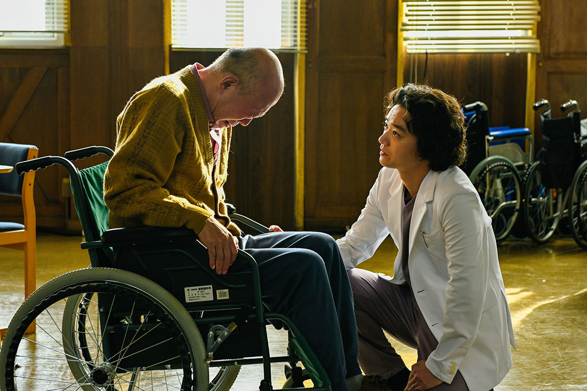 このたび公開された本予告は、にこやかな微笑みにはあまりにも不釣り合いな言葉「切断」を、漆原が口にする衝撃的な一言から幕を開ける。異人坂クリニック院長・漆原が提唱する「Aケア」は、介護負担の軽減を目的に、老人の“不要な手足”を切り落とすという従来の価値観を揺るがす治療法。身体の一部をまるで“廃棄物”のように切断された患者たちは、「憑き物が取れたみたいに体も心も軽くなった」「ここだけ若返ったみたい」と、どこか晴れやかな表情を浮かべていく。さらに「Aケア」の書籍化を持ちかける編集者・矢倉は、「本当に革命が起こるかもしれません」と期待をにじませるが、ある出来事をきっかけに状況は一変。