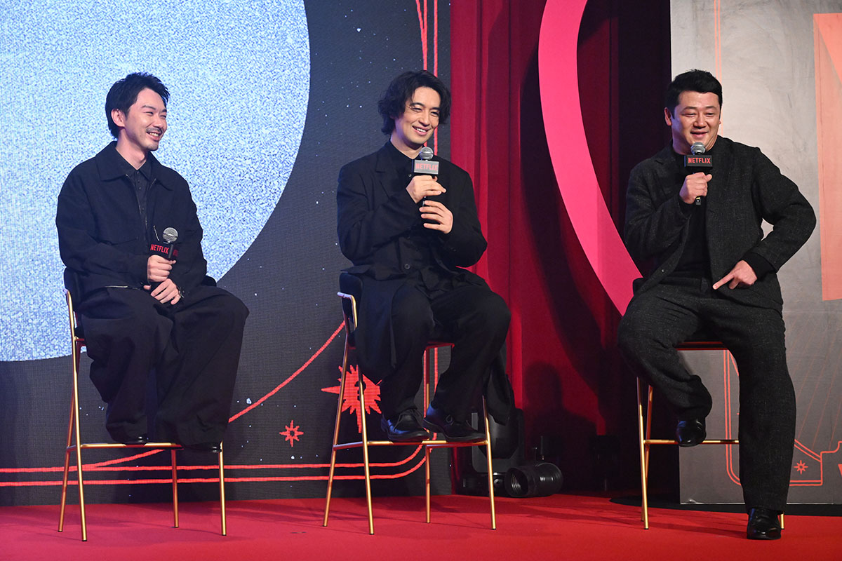 本イベントでは豪華ゲストを招いてのトークパネルも行われ、【映画】パートでは、冒頭、ステージから登場した煌びやかなダンサー達が会場全体を盛り上げる中、映画『This is I』から、主人公・アイ(望月春季)のモデルとなった、はるな愛の性別適合手術を担った医師・和田耕治を演じた斎藤工、監督の松本優作、エグゼクティブ・プロデューサーを務めるNetflixコンテンツ部門・佐藤善宏の3人が登壇。80~90年代の楽曲たちが彩る本作ならではの華やかな雰囲気の中スタートすると、佐藤と斎藤は「本当は皆で踊って登場する予定だったが、昨日練習しすぎて足を挫いたのでダンスはやめてしっかり話そうということになりました(笑)」と冗談めかして会場の笑いを誘い、和やかな空気でイベントは幕を開けた。
