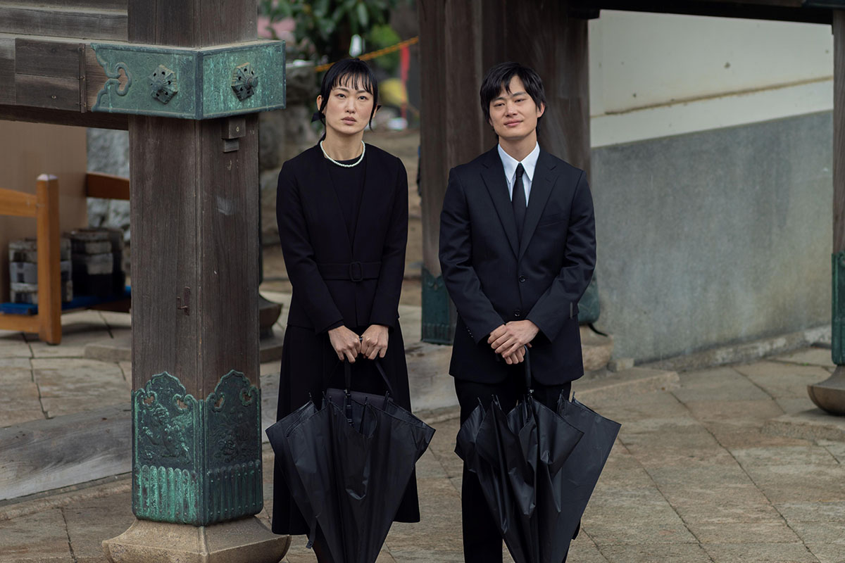 このたび公開された映像は、フィリップが「新郎」役として結婚式に参列する直前、突然姿を消してしまい、同僚の愛子と光太が大慌てで会場内を探し回るシーンを捉えたもの。やがて愛子は、フィリップがトイレの個室に隠れているのを発見する。親族や参列者を“騙す”ことになるのでは?との罪悪感に耐え切れず、彼はパニックを起こしていたのだ。「これはウソだ。みんなの人生を壊している」と訴えるフィリップに対し、愛子は個室のドアの隙間から顔をのぞかせ、「これはウソじゃない、チャンスなの!」と一喝。「両親は思い出を作り、新婦は自由を得る。あなたがひるめば、彼女は自由を失うのよ」と、この仕事が持つ重要性を必死に説く。さらに「あなたがやることは、ただお酒をすするだけ。それだけ!」と指示を飛ばしながら、強引にフィリップを現場へ連れ戻そうとする愛子。その姿はユーモラスでありながら、依頼人の幸せを必死に守ろうとするプロ根性が垣間見える。彼女の全力の怒りと、それに翻弄されるブレンダンの情けない表情が絶妙なアンサンブルを生み出している。