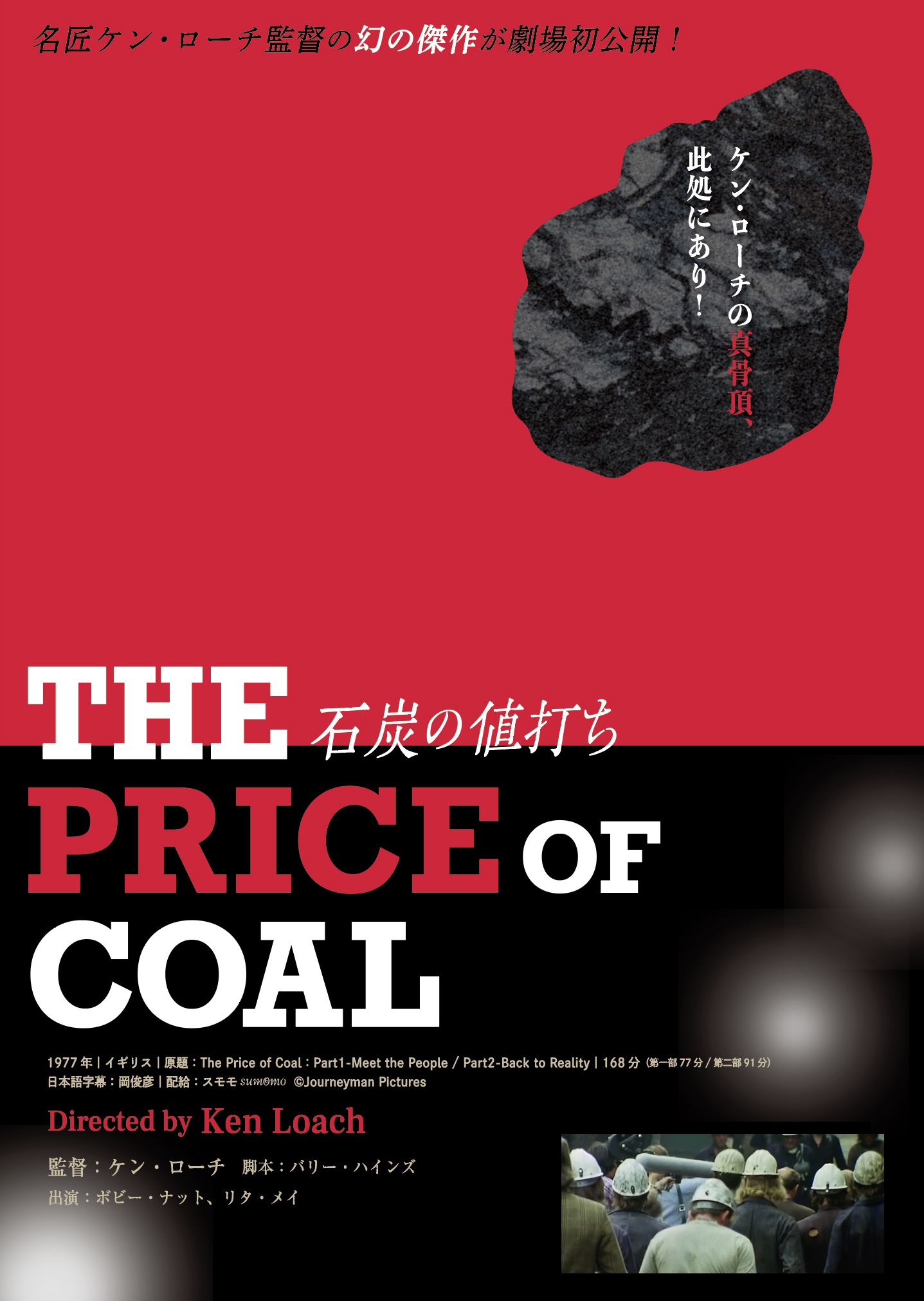 ケン・ローチが、1977年にBBCのドラマ枠「プレイ・フォー・トゥデイ」のために制作したテレビ映画「石炭の値打ち(The Price of Coal)」は、2部構成の社会派ドラマ。1969年に公開された映画『ケス』に続く、脚本家バリー・ハインズとタッグを組み、英国社会の象徴でもあった炭鉱という労働現場を舞台に、皇太子の視察訪問に右往左往する人々をコメディ調で描く第1部と、一転してハードでシリアスな第2部の2部構成で、炭鉱の人々の暮らしと人生がじっくりと描き出される。